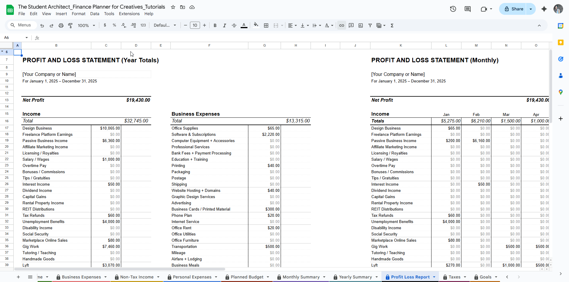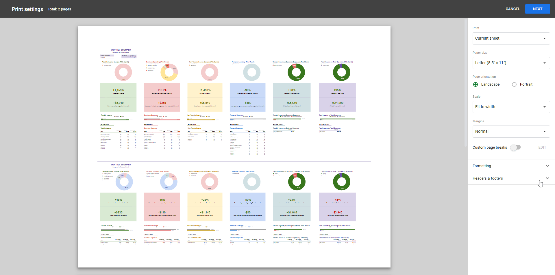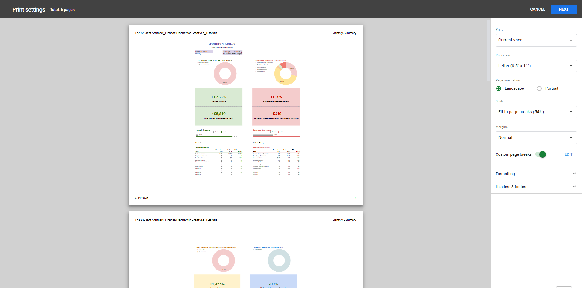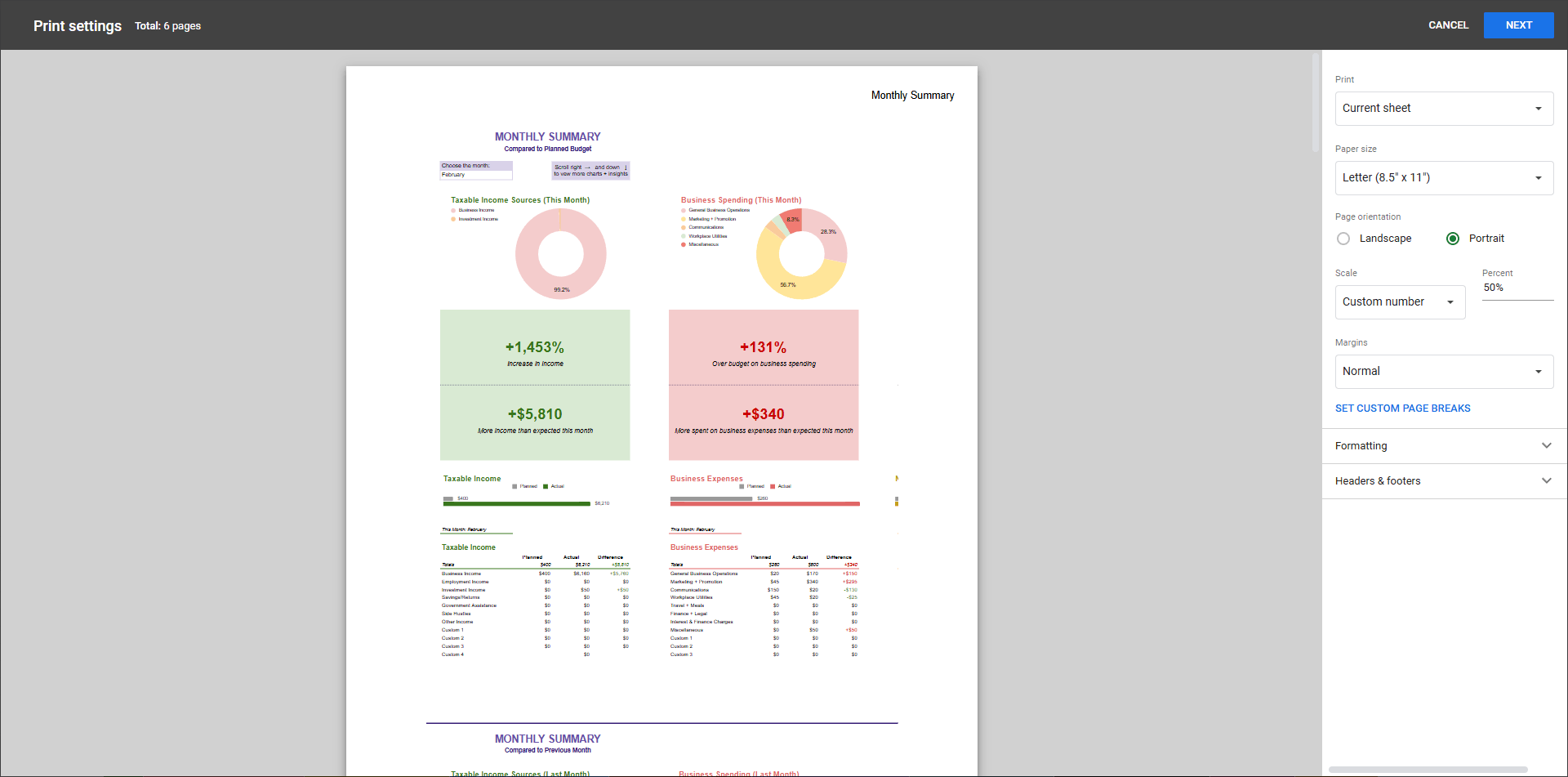 Need a hard copy of information from your Finance Planner for Creatives for a meeting, your accountant, or just for your own records? Google Sheets gives you plenty of control over what and how you print. Here’s how to get the results you want: