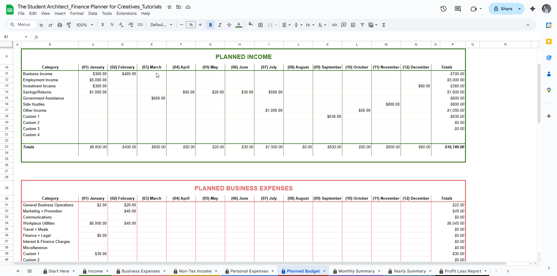 All Categories > Planned Budget + Goals > How to Use the Planned Budget Sheet in the Finance Planner for Creatives